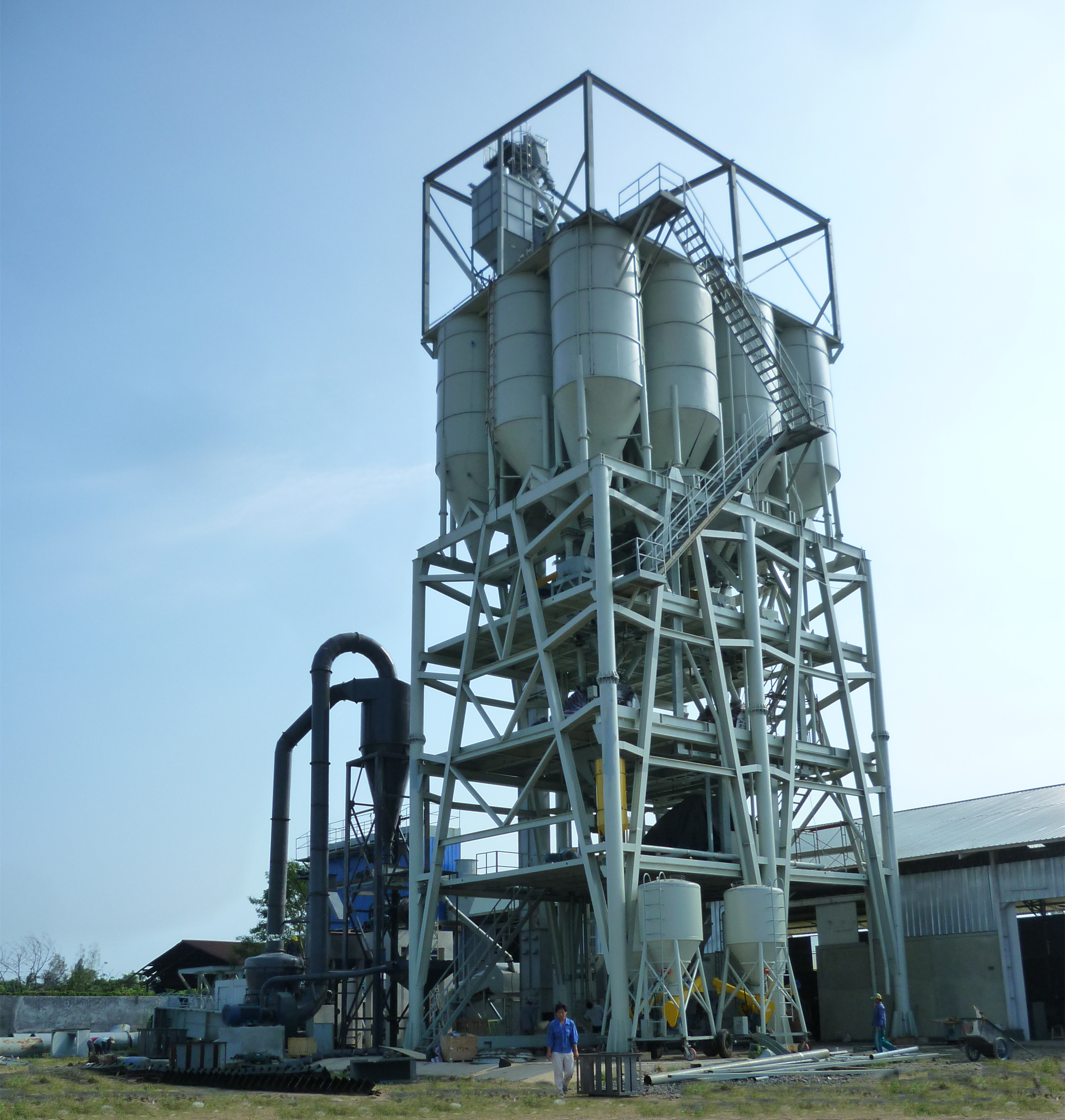 干粉砂漿生產(chǎn)線由烘干系統(tǒng)或制砂系統(tǒng)、原料存儲系統(tǒng)、自動配料系統(tǒng)、小料添加系統(tǒng)、混合主機(jī)、成品儲存系統(tǒng)、散裝或袋裝系統(tǒng)、除塵系統(tǒng)、電控系統(tǒng)等組成,具有性能先進(jìn)、結(jié)構(gòu)合理、攪拌快速均勻、能耗低、污染小、操作簡單、維修保養(yǎng)方便等特點。適用于抹面砂漿、砌筑砂漿、膩子粉、瓷磚膠、粉刷石膏等產(chǎn)品的生產(chǎn)。